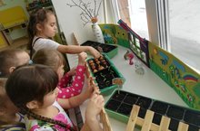 Зурлар төркеме балалары тәрәзә төбендә яшел бакча булдырдылар. Алар анда төрле орлыклар чәчеп, аларга су сибеп торалар, шытып чыкканын, үскәнен күзәтәләр.\\Создание живого уголка в детском саду имеет большое значение в воспитании малышей.Чаще всего детей приобщают к природе с помощью комнатных растений, воспитатели прививают подрастающему поколению любовь к "зеленым питомцам" и учат заботиться о них.