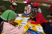 Уртанчылар төркеме балалары һәркөн саф һавада уйнарга чыгалар. Бүген исә, тәрбияче апалары Оксана Владимир кызы белән берлектә, балалар уйнап кына калмадылар, рәсем ясадылар, төрле әкият геройларын искә төшерделәр, саф һавада күңелле һәм файдалы итеп вакыт үткәделәр.