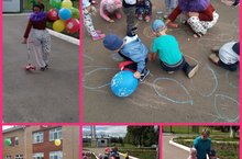 Кечкенәлэр һәм уртанчылар төркеме балалары (тәрбиячеләр Латипова Р., Гиздуллина Р.) " Шар бәйрәме " уткэрделэр. Күңелле клоун балалар белән төрле уеннар оештырды. Балалар асфальтка шарлар ясадылар. Бәйрәм бик күңелле һәм мавыктыргыч булды.