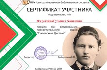 Педагог-библиотекарь нашей школы Фазуллина Гульшат Хавиловна прошла региональную просветительскую акцию "Тукаевский диктант".