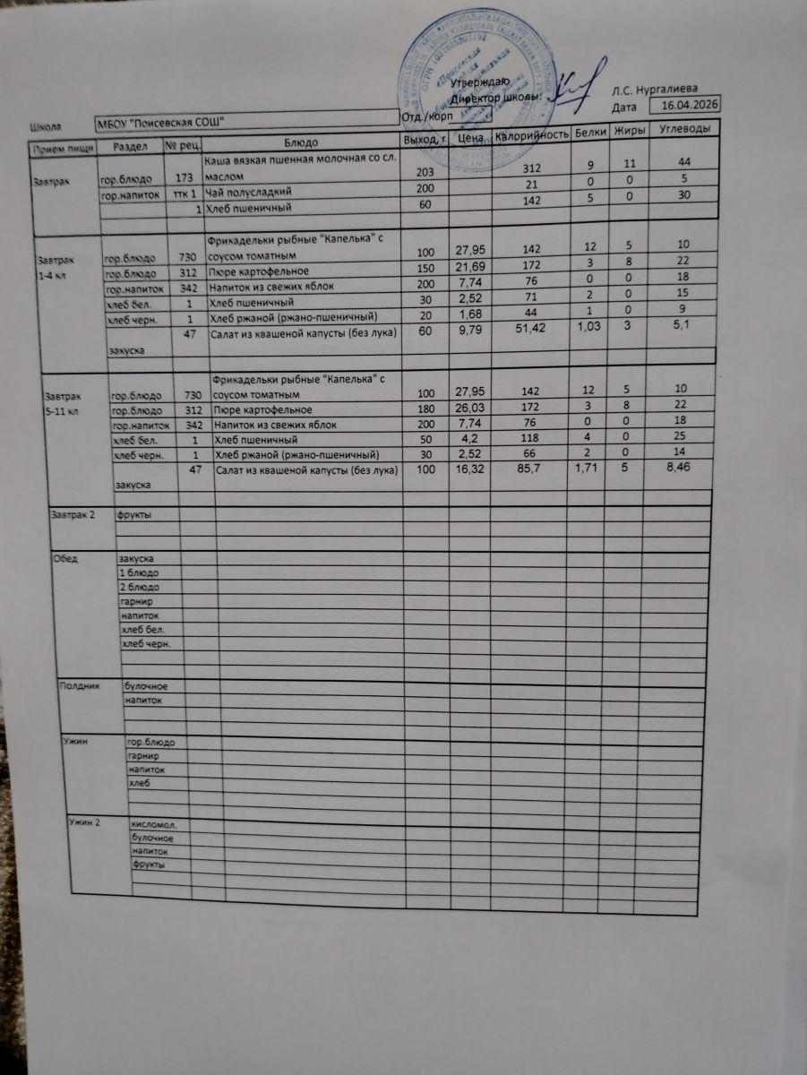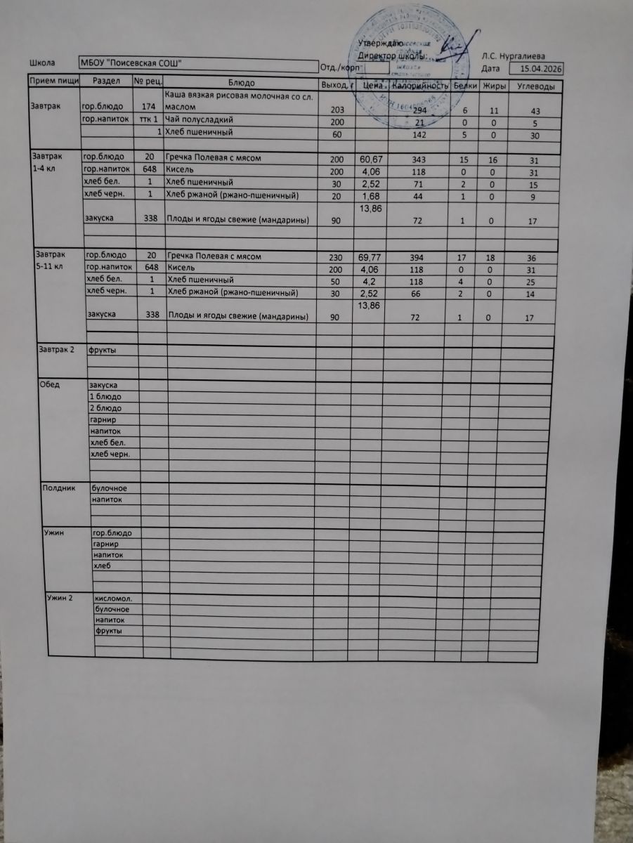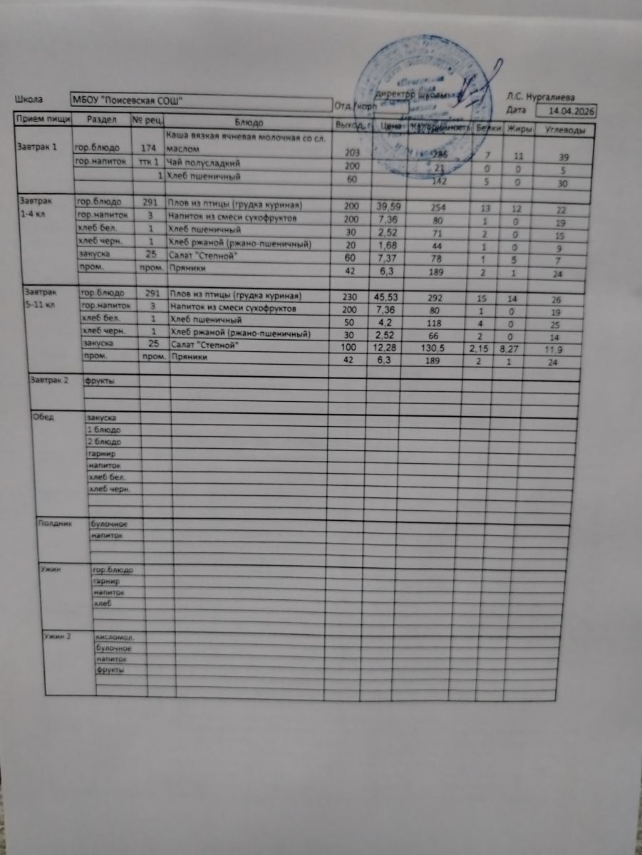 Ежедневное меню/Көндәлек меню