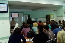 Обучающий семинар учителей начальных классов по теме "Общие подходы к проектированию урока в начальной школе в соответствии с ФГОС". Проводит заведующий кафедрой дошкольного и начального образования ИРО РТ Гульназ Рашидовна Хамитова.