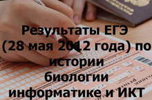 Сегодня в 16:00 часов стали известны результаты ЕГЭ по истории, биологии, информатике и ИКТ, прошедших 28 мая 2012 года.