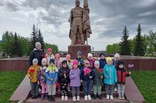 9 Май-Җиңү көне-безнең һәрберебез өчен изге бәйрәм һәм без, илебезнең бүгенге гражданнары, Җиңү турында хәтерне киләчәк буыннарга тапшырырга тиеш. 4 нче "Әтәчкәй" балалар бакчасында Бөек Җиңүне көненә багышланган чаралар елдан-ел үткәрелә һәм бу ел да искәрмә түгел. 9 Май алдыннан балалар бакчасында Бөек Җиңү көненә багышланган бәйрәм узды. Бәйрәм балаларда Бөек Ватан сугышы турында белемнәр формалаштыру, мәктәпкәчә яшьтәге балаларның үз илебезнең тарихы турында белемнәрен арттыру, халкыбызның каһарманлыгы өчен горурлык хисе тәрбияләү, армия белән тотрыклы кызыксыну тәрбияләү максатыннан әзерләнгән иде. Чара программасына Җиңү бәйрәме, тынычлык, солдатлар турында җырлар, биюләр, сугыш турында шигырьләр, Ватанны саклаучыларның үлемсез батырлыгы турында җырлар кертелде. Чара ахырында балалар Бөек Җиңү паркындагы Билгесез солдат һәйкәленә чәчәкләр куйдылар.9 Мая-День Победы-святой для каждого из нас праздник и мы, сегодняшние граждане страны, должны донести память о победе следующим поколениям. В 4 детском саду "Петушок" мероприятие, посвященное ко Дню Великой Победы из года в год проводится. И этот год не исключение. В канун 9 мая в детском саду прошел праздник, посвященный Дню Великой Победы. Целью праздника является формирование у детей знание о празднике Великой Отечественной Войны, расширить знания об истории своей страны, воспитывать чувство гордости. Мероприятие День Победы проходил под песнями о победе, танцами, стихами о войне. В конце мероприятия дети возложили цветы к памятнику Неизвестному солдату в парке Победы.