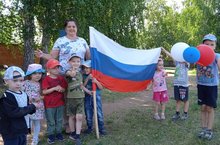 День России – это праздник свободы, мира и добра. Этот праздник символизирует единство всего нашего многонационального народа, напоминает, что все несут ответственность за настоящее и будущее нашей Родины. Сегодня в детском саду №5 села Актаныш детям было рассказано, почему флаг России состоит из трех цветов, и что обозначает каждый цвет, послушали гимн и разучивали слова гимна.