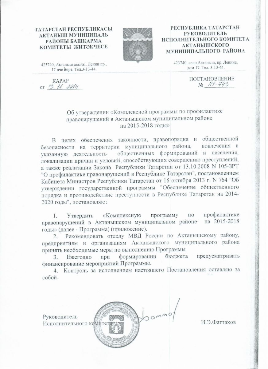 Об утверждении Муниципальной антикоррупционной программы Актанышского МР на 2015-2020 годы