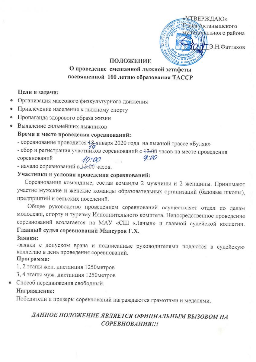 Положение о проведении смешанной лыжной эстафеты посвященной 100-летию образования ТАССР(обновленный).
