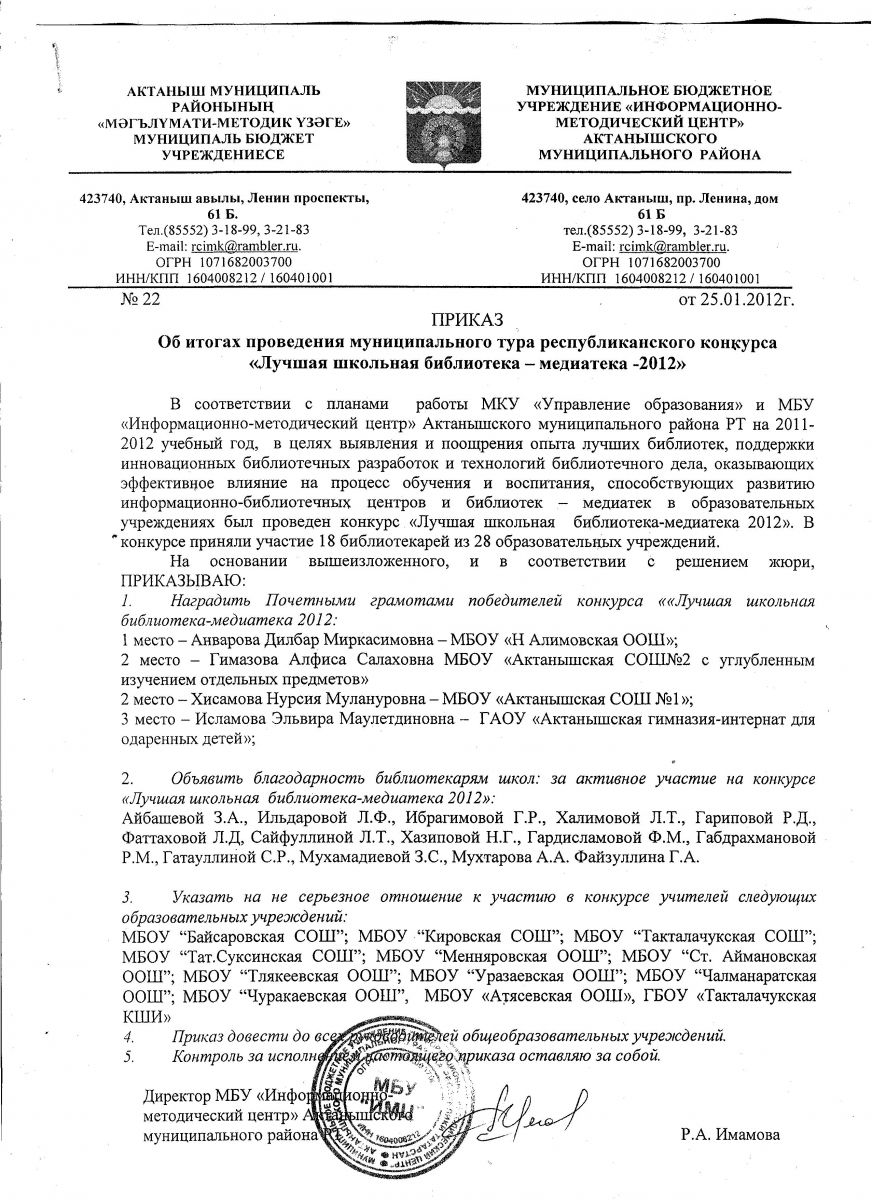 Приказ МБУ ИМЦ №51 от 3 апреля 2012 года