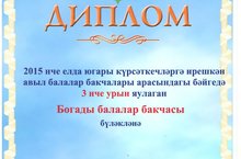 Богады балалар бакчасы коллективы 2015 нче елда авыл балалар бакчалары арасында бәйгедә 3 нче урынга лаек булды. Тәрбия бирүдә югары күрсәткечләргә ирешкән өчен Актаныш муниципаль районы башлыгы Ф.М.Камаевның дипломы белән бүләкләнде.