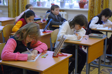 Бүген 4нче класс укучылары рус теленнән тестирование үтте.