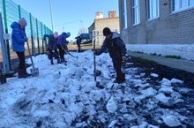 Апрель кояшына бирешмичә, һаман эреми яткан кар өемнәрен шимбә өмәсендә таратып, тирә-якны ялт иттердек.