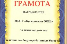 Наша школа награждена Грамотой за активное участие на муниципальном этапе акции по сбору отработанных батареек. Второй этап акции запланирован на март-месяц.///