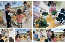 Икенче кечкенәләр-уртанчылар төркеме балалары белән хезмәт тәрбиясе шөгылендә бүлмә гөлләрен карадык. Яфракларын сөрттек, туфрагын йомшарттык, су сиптек. Балаларга бу шөгыль бик ошады, яратып күңел биреп эшләделәр.