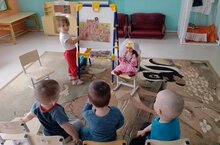 Сөйләм үстерү шөгылендә без, "Минем гаиләм" темасы турында сөйләштек. Әти-әни, абый-апа, әби-дәү әни, бабай, бәби сүзләрен өйрәндек. Марат исемле курчакка ярдәм иттек.
