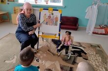 На занятии по развитию речи мы говорили на тему "Моя семья". Выучили слова мама-папа, брат-сестра, бабушка-дедушка, малыш. Помогли кукле по имени Марат.