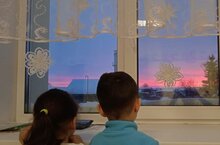 Сегодня утром дети средней группы наблюдали за красивым завораживающим явлением природы, как восход солнца. Они подошли к окну и поздоровались с солнцем. Оно им улыбнулось и подарило яркие лучи. -