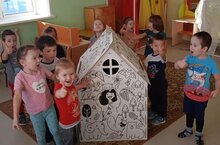 Икенче кечкенәләр-уртанчылар төркеме әти-әниләре балаларга буйый торган картоннан ясалган йорт бүләк иттеләр.