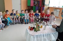 Кече төркем балалары зур кызыксыну белән «Бүре һәм җиде кәҗә бәтие» әкиятен тыңладылар.