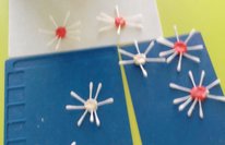 Дети любят делать поделки с использованием различных материалов.По краям пластилина вставлялись хлопчатобумажные палочки.Пальцы малышей работали очень умело.
