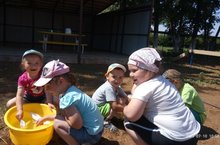 Җәйнең бер ямьле эссе көнендә балалар белән су белән уеннар оештырдык. Зур савытларга су тутырдык һәм балалар тырышлыгы белән кәгазь көймәләр ясалды. Көймәләрне суда йөздереп карау балаларга иксез-чиксез куаныч китерде. / В один из жарких летних дней вместе с детьми решили организовать водные игры. В большую ёмкость набрали воды. Старанием детей были сделаны бумажные кораблики. Они пустили их в плавание, что доставило детям большую радость.