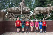 Актанышның иң матур паркларның берсе - Җиңү паркына балалар белән экскурсия оештырылды. Балалар әлеге парктагы "Мәңгелек ут", танклар һәм һәйкәлләр карадылар. Бигрәкт тә аларга сугыш чоры елларының тормышын чагылдырган арбалы ат һәм шул чор кешеләре сурәтләнгән һәйкәл ошады. Әлеге һәйкәлне балалар озак күзәттеләр. Җиңү бәйрәме, сугыш еллары турында әңгәмә алып барылды. / С детьми нашего детского сада была организована экскурсия в один из самых красивых парков нашего села Актаныш в парк "Победы". В этом парке дети осмотрели "Вечный огонь", танки и памятники. Особенно детям понравился памятник "Ветеранам тыла", который состоит и повозки и людей тех времён. Этот памятник дети долго рассматривали. Была проведена беседа о годах ВОВ и празднике Великой Победы.