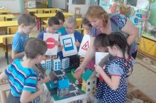 Дети подготовительной группы повторили правила поведения на дорогах, узнали о запрещающих информационных и предупреждающих дорожных знаках, закрепили правила поведения в дорожном транспорте, работали с макетом улицы.