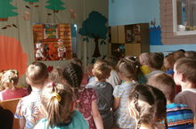 Балаларның дуслык, бергәләп эшләү эшчәнлекләрен үстерү, театр сәнгатенә тарту максатыннан район күләмендә "Театр - яктылыкка, нурга илтә" дигән бәйге оештырылды.Мәктәпкә хәзерлек группасы балалары тәрбияче Хуҗина Р.Г. җитәкчелегендә "Үрдәк яңа дуслар эзли", зурлар группасы балалары тәрбияче Солтанова Ә.Н. оештырган "Батыр әтәч" театры жюри членнарына һәм ата-аналарга тәкъдим иттеләр.