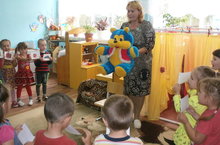 Балалар рус теленә бик теләп өйрәнәләр.Шөгыльләрдә сюрприз моментлар кертү балаларны тагын да кызыксындыра.Бүген дә аларга әкият иленнән Аю баласы килгән, ләкин буш кул белән түгел: тулы бер кәрзин уенчыклар, уеннар алып килгән. Уеннар аша балаларның сүзлек запаслары баетыла, сөйләм телләре үсә, дуслыклары арта.