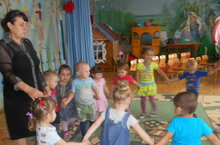 2 кечкенәләр группасы балалары музыка шөгылендә җырлы - биюле уеннарны бик яраталар. Бүген алар түгәрәк уенын уйнадылар. Аларның хәрәкәт активлыклары үстерелде, кәефләре күтәрелде