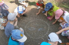 Балаларыбыз чын рәссамнар булып асфальтка акбур белән рәсемнәр ясадылар.Алар бер - берләренә кояш кебек елмаюлар да бүләк иттеләр.