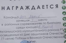 Ватанны саклаучылар көненә һәм Бөек Ватан сугышында Җиңүнең 77 еллыгына багышланган 10-11 класс егетләре арасында район биатлон бәйгесендә безнең мәктәп командасы беренче урынны яулады.Афәрин!