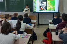 С учащимися 5-х классов был проведен урок по внеклассному чтению по творчеству поэта. Учитель татарского языка и литературы Ирина Рифовна познакомила школьников с произведениями писателя, созданными в годы войны.