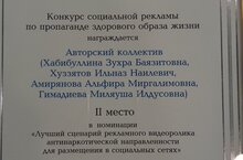 Авторский коллектив нашей школы ( Хабибуллина Зухра Баязитовна, Гимадиева Миляуша Илдусовна, Хуззятов Ильназ Наилевич, Амирянова Альфира Миргалимовна) занял 2 место в номинации "Лучший сценарий рекламного видеоролика антинаркотической направленности для размещения в социальных сетях" в конкурсе социальной рекламы по пропаганде здорового образа жизни. Поздравляем!