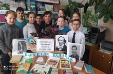 2 апреля в честь дня рождения детского писателя Ганса Христиана Андерсона библиотекарь Хисамова Нурсия Муллануровна провела с учащимися 5а и 5г классов библиотечный урок "Счастливое детство".