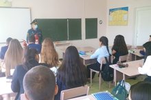 Сегодня учащиеся школы встретились с представителем МЧС. Гость провел с ребятами беседу, целью которой являлась проверка знаний детей по пожарной безопасности, предупреждение пожаров дома и в школе, на пикниках, отдыхе в парках, лесах. Также напомнил правила поведения во время чрезвычайных ситуаций.