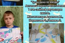 Амирянова Ислам (учитель Шакурова Фаниса Тагировна), Насиров Гамир (учитель Камалова Илюза Сагитовна), Мансурова Сайда (учитель Ахунова Илиза Энгеловна). Галиева Тансылу (учитель Валиева Лилия Глюсовна), Атнагулова Алина (учитель Атнагулова Елена Альбертовна) - победители в номинации "Яркая палитра"