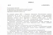 На основании приказа МКУ « Управление образования» Исполнительного комитета Актанышского МР № 563-ОД от 28.12.2018г. «О порядке приема и сроках регистрации заявлений на прохождение государственной итоговой аттестации по образовательным программам основного общего образования в 2018/2019 учебном году», в целях организованного проведения в 2019 году государственной итоговой аттестации по образовательным программам основного общего образования в школе организован прием и регистрация заявлений на сдачу государственной итоговой аттестации по образовательным программам основного общего образования в 2018/2019 учебном году в срок до 1 марта 2019 года (включительно).