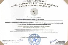Ученица 11Б класса Габрахманова Регина приняла участие в Первом междуународном фестивале конкурса имени Альфии Авзаловой, проведенного фондом сохранения и развития творчества певицы Альфии Авзаловой при поддержке Министерства культуры Республики Татарстан, мэрии города Казани, фонда поддержки развития культуры при президенте Республики Татарстан, Всемирного конгресса татар и стала почетным лауреатом II степени. Руководитель - Галиева Ленара Рафаиловна. Молодцы! Так держать!