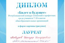 Ученик 8 класса Акбиров Ильсуар принял участие в Республиканском конкурсе сочинений "Билет в будущее" в форме картинки (рисунка) и стал лауреатом среди учащихся 7-10 классов. Учитель - Фазлыев Алмаз Гафиятович. Молодцы! Так держать!