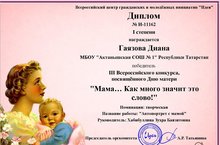 Валиева Алсу Рифовна - диплом победителя III степени,