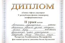 Укытучыларыбыз "Гамил Афзал" V республика фәнни-тикшеренү конференцияседә катнашып, зур уңышларга иреште: Хуббутдинова Дилара Дугласовна - I урын, Даутова Алсу Камиловна - II урын, Шакурова Фәнисә Тагировна һәм Нуриева Ләйлә Марселевна - III урын. Камалова Илүзә Сагитовна, Ахунова Илиза Энгеловна һәм Ахметзянова Айсылу Заниловна катнашучы дипломнары белән бүләкләнде. Котлыйбыз!