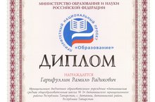 Учащийся 11б класса Гарифуллин Рамиль стал лауреатом премии по поддержке талантливой молодежи, установленной Указом Президента Российской Федерации от 6 апреля 2006 г. №325 "О мерах государственной поддержки талантливой молодежи". Рамиль награжден дипломом Министра образования и науки Российской Федерации Д.В.Ливанова в рамках приоритетного национального проекта "Образование". Поздравляем! Молодец, Рамиль!