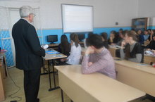 Сегодня с учащимися 10-11 классов всретился представитель Казанского государственного энергетического университета - кандидат физико-математических наук, доцент Кротов Владимир Иванович. Он подробно рассказал об этом ВУЗЕ: по каким направлениям, профилям можно обучаться, условия поступления и о многом другом. Встреча была очень интересной и познавательной.