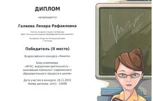 Учитель татарского языка и литературы Галиева Ленара Рафаиловна приняла участие в блиц-олимпиаде "ФГОС: внеурочная деятельность - важнейший компонент современного образовательного процесса в школе" Всероссийского конкурса для педагогов "Умната" и стала победителем (II место). Поздравляем!