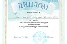 Учащийся 10б класса Галимянов Айдар (руководитель - Мухамадиев Дильшат Сагитович) принял участие в VII Межрегиональном конкурсе по технологии "Созидательный труд школьников", проходившем в Елабужском институте (филиале) ФГАОУ ВО "Казанский (Приволжский) федеральный университет" и занял I место. Молодец, Айдар! Желаем дальнейших успехов!