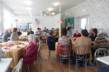 Өлкәннәр декадасына багышланган чаралар дәвам итә. Мәктәбебез ашханәсендә өлкән яшьтәге укытучылар чөй өстәле артына жыелдылар. Бәйрәм җыр-биюләр белән үрелеп бара.