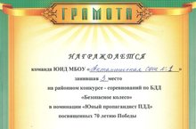 Юные инспекторы движения района состязались в знаниях ПДД на 17 районных соревнованиях республиканского конкурса “Безопасное колесо”, посвященного 70-летию Победы. Ученики соревновались в знаниях правил дорожного движения, оказания первой медицинской помощи, тренировались в вождении велосипеда, а также придумывали оригинальное творческое представление.