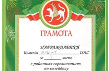 25 апреля в спортивном комплексе "Актаныш" прошли районные соревнования по волейболу среди юношей и девушек. Нашу школу на мероприятии представили две команды: команда юношей в составе Муртазина Дамира (9А класс), Газдалиева Рамзиля (9Б класс), Амируллина Барласа (10А класс), Салихова Ильназа (9Б класс), Шарипова Булата (9Б класс), Муллагалиева Айгиза (9Б класс), Аглямова Илдуса (9Б класс), Закиржэанова Алмаза (10А класс), Хусаинова Газиза (10А класс) и команда девушек в составе Салаховой Нафисы (9А класс), Исламовой Чулпан (10А класс), Мардановой Радисы (10А класс), Исмакаевой Гульчачак (10Б класс), Сергеевой Гузель (11А класс), Якуповой Физалии (10А класс), Фарраховой Гульназ (10А класс). Обе команды показали великолепную игру и заняли I места. Молодцы!