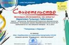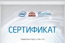 Учитель математики и информатики Галиева Рузиля Ферролевна награждена сертификатом за активное участие во II Международной образовательной научно-практической он-лайн конференции "Новая школа: мой маршрут", проводимой корпорацией Intel, АПКиППРО, Государственным институтом русского языка им.А.С.Пушкина с целью повышения уровня ИКТ-компетенций работников образования и обмена опытом использования новых технологий в образовательной практике.