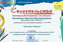 Библиотекарь Хисамова Нурсия Муллануровна опубликовала свой материал "Шигърият бәйрәме" на сайте интернет-проекта "Копилка уроков - сайт для учителей".